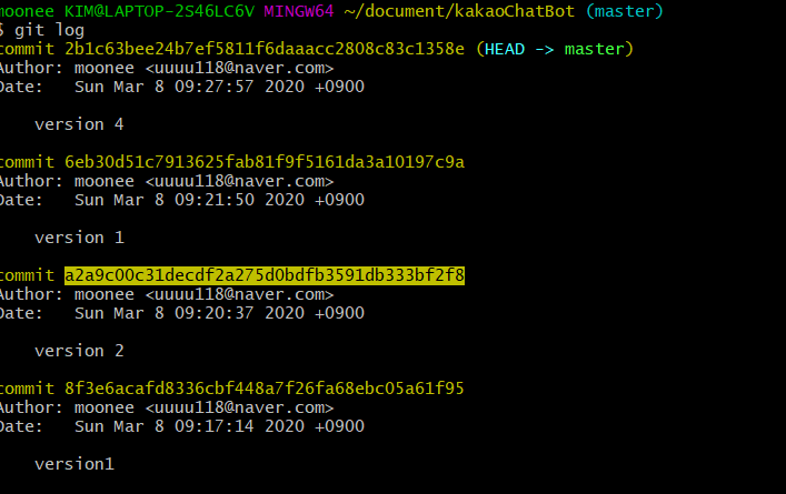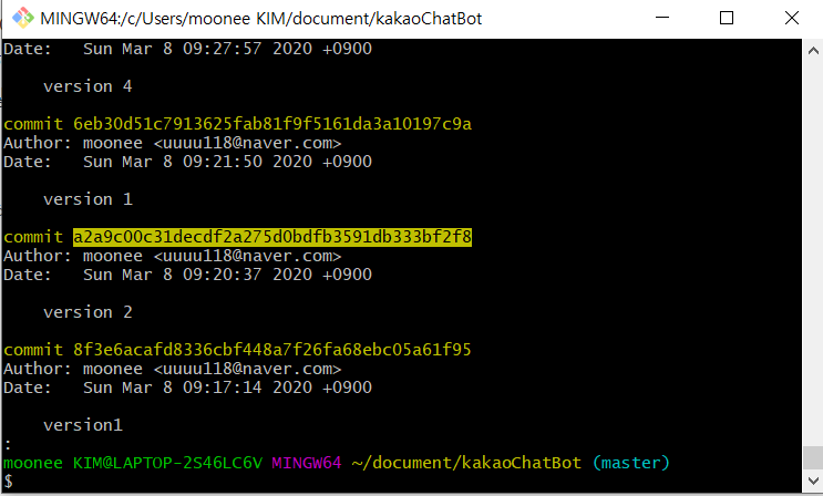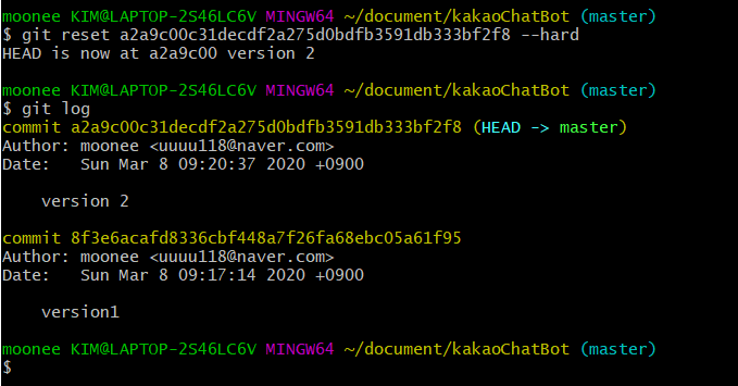 내가 저 version 2 로 돌아가고 싶고, 그 위의 버전들을 삭제하고 싶다면, 해당 커밋의 주소를 복사하여